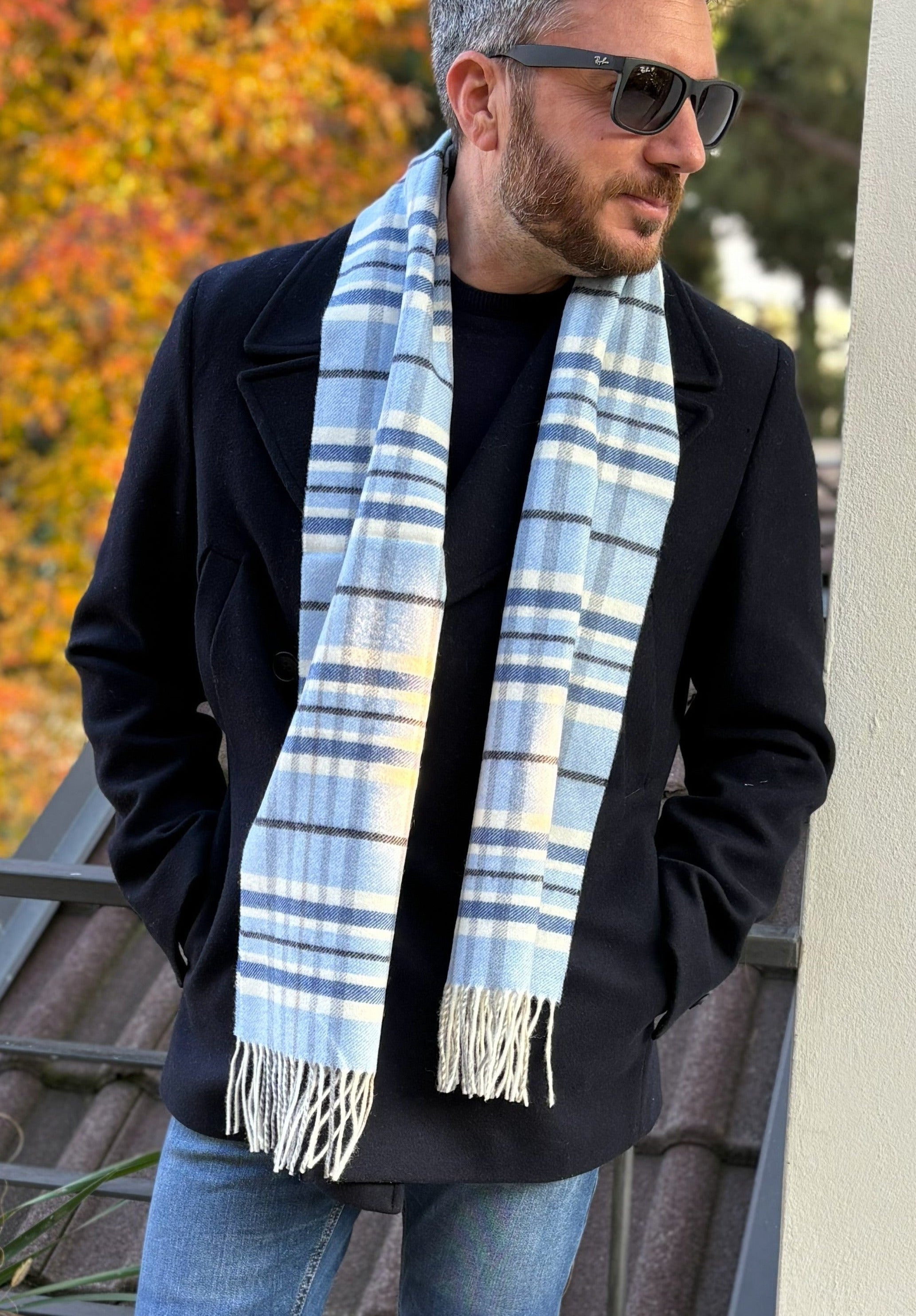 Sciarpa scozzese - 100% Lana Merino- Blu/Azzurro